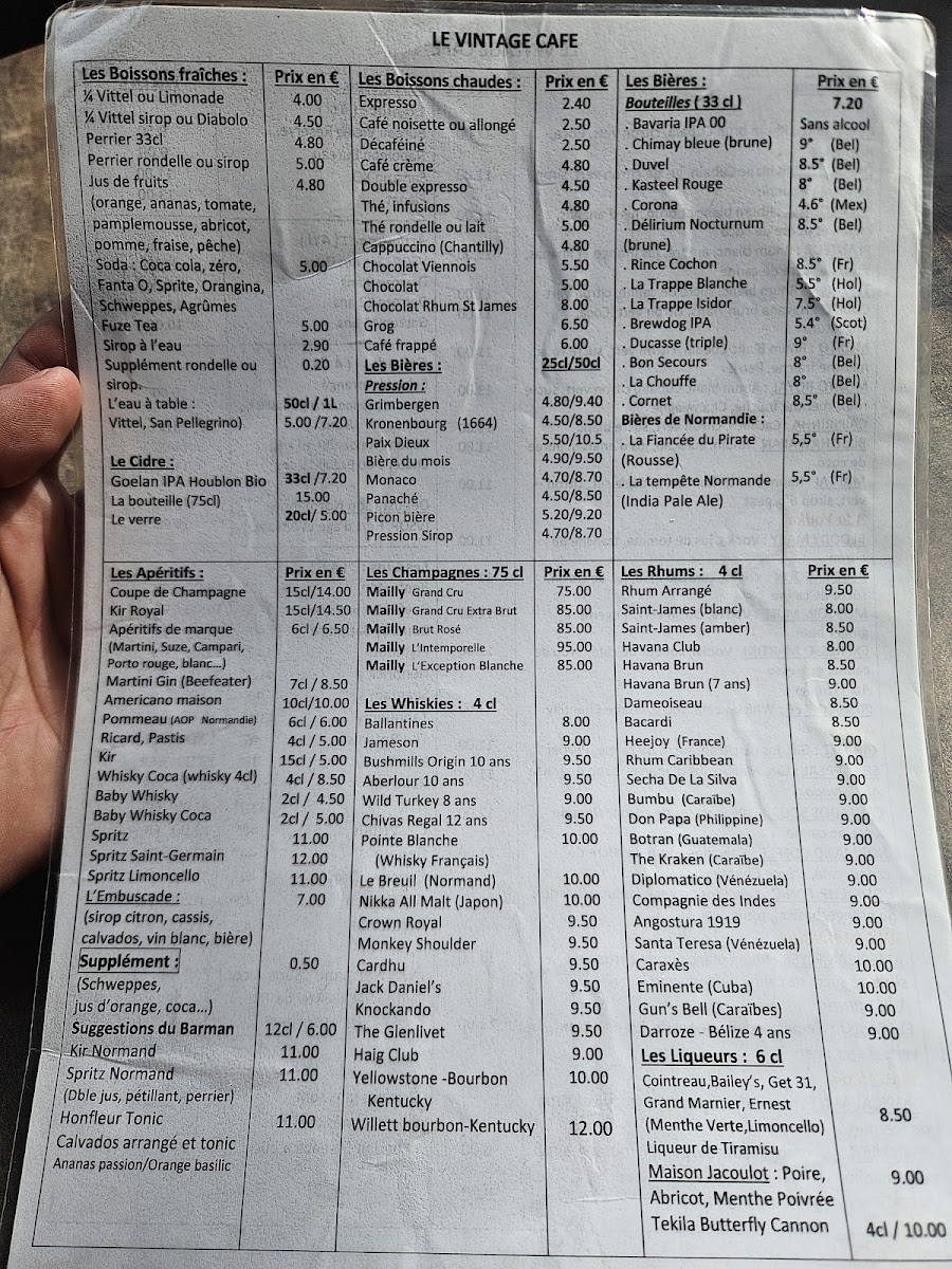 So, if you find yourself wandering the picturesque streets of Honfleur, don’t miss the opportunity to step into The Vintage Café. With a blend of hearty meals, friendly service, and a dash of vintage charm, you're guaranteed a satisfying dining experience. Whether you sit inside or enjoy the scenic views from the outside seats, this café is destined to be a highlight of your visit.